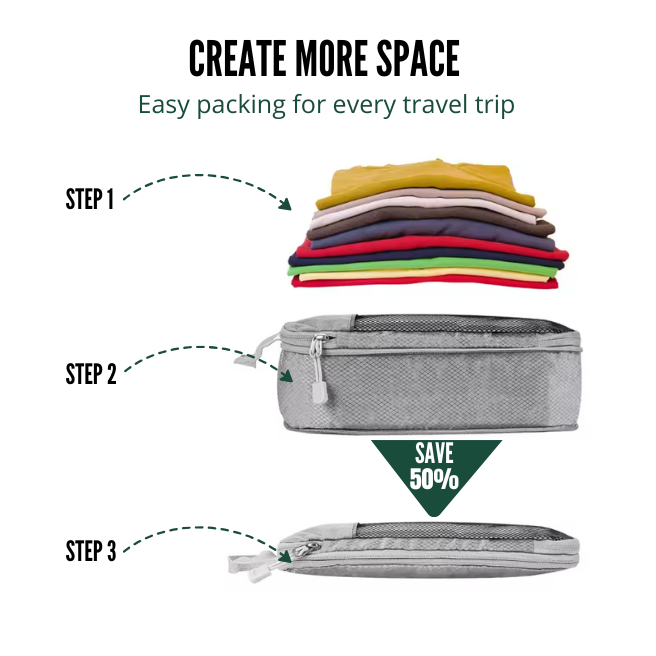 Upgrade your packing game and experience stress-free travel with our premium compression packing cubes. Stay organized, travel light, and make every journey effortless.